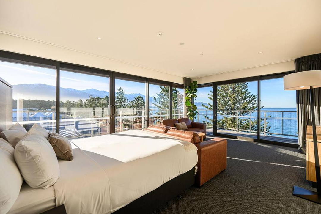Sudima Kaikōura is a stylish beachfront hotel where contemporary design meets the natural beauty of New Zealand’s coast. With direct beach access, an infinity swimming pool, and a sun terrace, it’s the perfect spot to relax and take in the sweeping views of the Pacific Ocean.