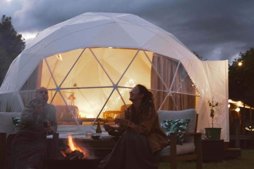 Guests enjoy heated cabins with balconies, a large shared kitchen, and communal dining and lounge areas. Relax by the outdoor fireplace, socialize over a BBQ, or take in the coastal views. Families, groups, and solo adventurers all love the vibrant, community feel.